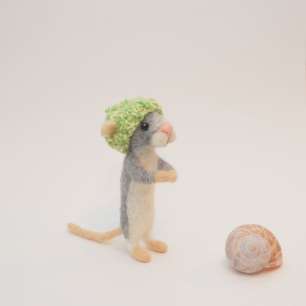 Diese Filz-Maus wird von Natalia mit viel Liebe aus Schweizer Schafwolle und Schurwolle mit der Nadel gefilzt. Dabei werden die vielen kleinen Wollhaare schön fest ineinander verhakt. Durch das Bearbeiten mit der Nadel bringt Natalia die Wolle in die gewünschte Form. Die Maus ist ca. 12 cm gross und trägt eine Mütze aus Wolle. Diese kann auch abgenommen werden. Bei dieser Maus hat Natalia ein Drahtgerüst benutzt, welches anschliessend mit Wolle bedeckt wird.